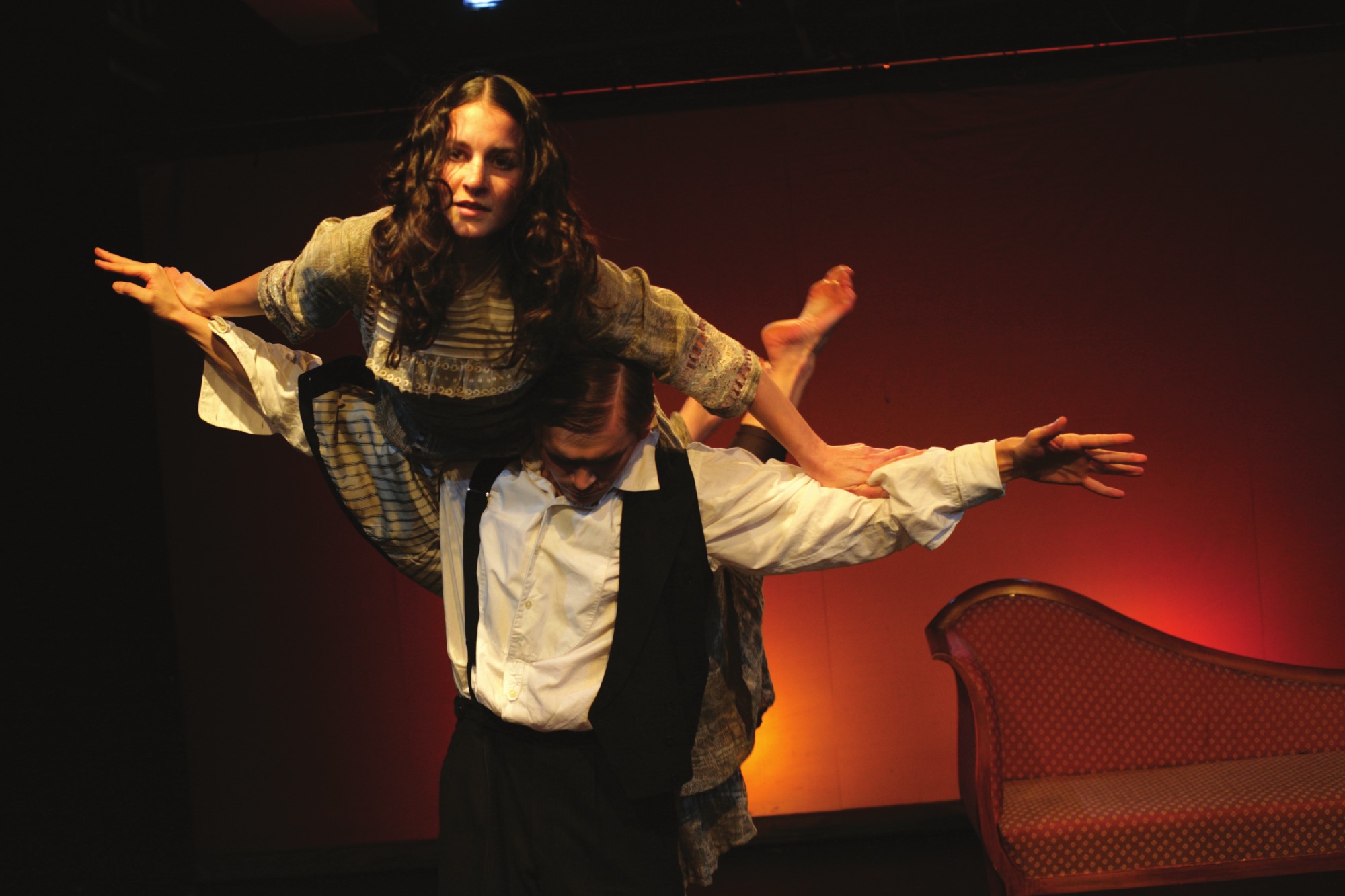 Can movement theater tell psychologically complex stories? The split interior of the main characters of the psychological novel Crime and Punishment, their existential questions and denials are revealed as a dance performance. Psychological contradictions are reflected in existential conflicts, opposition to social norms, walking on the edge of what is permitted, crossing over the edge of social convention and ethical commandments further lengthens the path to the desired mental and social peace.